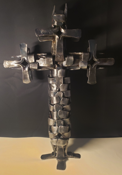 La création artistique sacré en fer forgé est une expression magistrale de la ferronnerie d'art, où se rencontrent style et spiritualité. Elle apporte design et profondeur dans notre vie de prière . Entre métal et lumière, la forge relie l'esprit à la matière tout en méditant sur les mystères de la vie du Christ. La ferronnerie d'art liturgique répond à des besoins d'aménagement de choeur ou d'oratoire, comme du mobilier d'église, des objets de dévotions ou tout simplement de cadeaux de baptème ou de mariage.